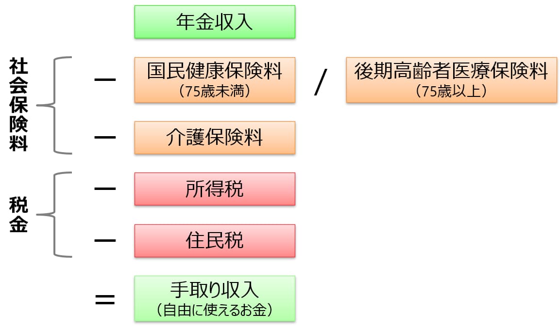 年金収入からは社会保険料と税金が引かれる
